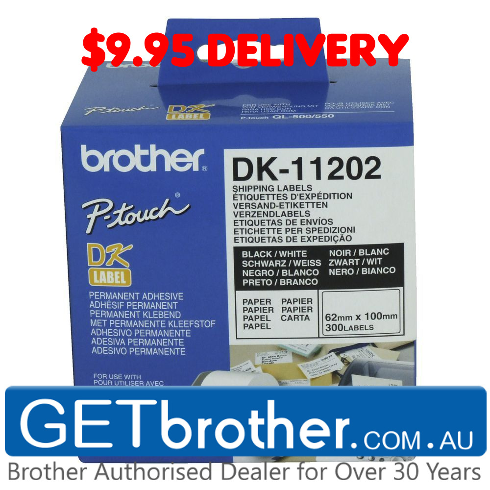 Brother DK-11202 White Label Genuine - 62mm x 100mm - 300 per roll (DK-11202)