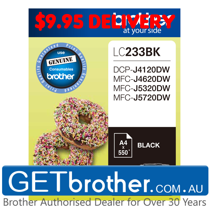 Brother LC-233 Black Ink Cartridge Genuine - up to 550 pages (LC-233BK)